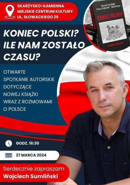 rozpoczęliśmy spotkania związane z ukazaniem się najnowszej książki pt. "KONIEC POLSKI?" autorstwa dziennikarza śledczego Wojciecha Sumlińskiego, majora ABW Tomasza Budzyńskiego i specjalisty ds. amerykańskich dr Michała Krupy.