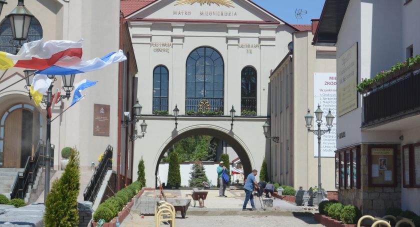 Parafianie Sanktuarium Matki Bożej Ostrobramskiej w Skarżysku - Kamiennej muszą jeszcze przez chwilę uzbroić się w cierpliwość,chwilowo promenada przed Ostrą Bramą jest wyłączona z użytkowania, trwa właśnie wymiana kostki, będzie też więcej zieleni, To wszystko dzięki firmie Tajemniczy Ogród, która wykonuje wszystkie prace.