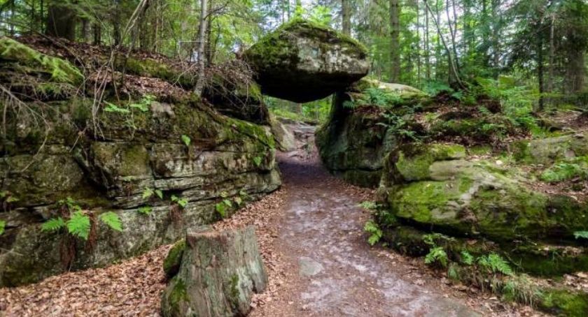 Rezerwat "Brama Piekielna" – niezwykły pomnik przyrody, jest to swoista brama skalna powstała siłami natury, bądź z udziałem piekielnych mocy! Każdy turysta odwiedzający miejsce robi sobie zdjęcia uwieczniające dźwiganie ogromnego głazu skalnego - to najlepsza pamiątka ze szlaku.