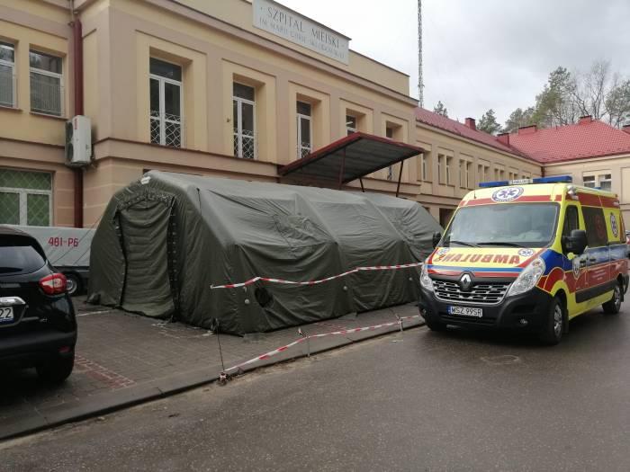 Przed skarżyskim szpitalem stanął namiot, która ma izolować pacjentów z podejrzeniem zarażenia koronawirusem. W razie podejrzenia u pacjenta zarażenia koronawirusem, ten będzie przewożony do szpitala zakaźnego.