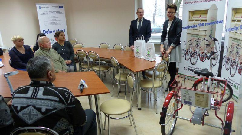 Należy zwrócić się do fundacji. Dokumenty do pobrania i wszelkie informacje można znaleźć na stronie www.ecotextil.pl . W pierwszej kolejności rowery dostają osoby, które otrzymały na nie dofinansowanie z Państwowego Funduszu Rehabilitacji Osób Niepełnosprawnych, za pośrednictwem PCPR-ów. W takiej sytuacji skarżyska fundacja pokrywa część kosztów, która normalnie obciążałaby beneficjenta. W ten sposób przekazano 105 z 866 trójkołowców.