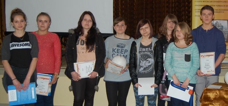 Uczniowie wyróżnieni: Patrycja Gibała, Ewa Przygoda, Izabela Dulęba, Sebastian Sitek i Sylwia Przeorska.