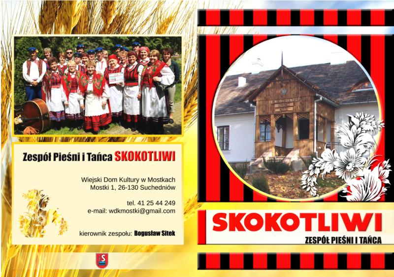 Na imprezie nie mogło więc zabraknąć zespołu Skokotliwi, który realizuje projekt pn: "Kultywowanie i popularyzacja dorobku kulturowego regionu poprzez udział Zespołu Pieśni i Tańca Skokotliwi z Mostek w imprezach folklorystycznych". Projekt realizuje Stowarzyszenie "Kuźniczy Krąg" działające przy SOK Kuźnica w Suchedniowie od 2012 roku. Finansowo wspiera go Burmistrza Miasta i Gminy Suchedniów Cezary Błach ze środków przeznaczonych na kulturę, sztukę i ochronę dóbr kultury i dziedzictwa narodowego.
