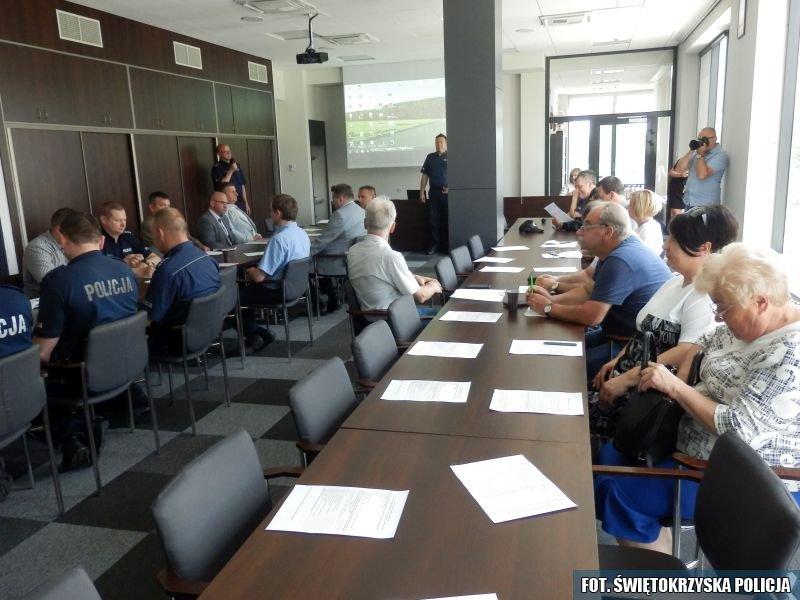 Na sali konferencyjnej skarżyskiej jednostki policji spotkali się dziś przedstawiciele lokalnych samorządów, prokuratury, rad osiedlowych, spółdzielni mieszkaniowej, staży pożarnej, leśnicy i policjanci. Okazją do spotkania była debata społeczna „Porozmawiajmy o bezpieczeństwie – możesz mieć na nie wpływ”. Spotkanie oficjalnie rozpoczął Komendant Powiatowy Policji w Skarżysku – Kamiennej insp. Tomasz śliwiński, który omówił następnie stan bezpieczeństwa w naszym powiecie. Kolejnym punktem debaty była promocja Krajowej Mapy Zagrożeń Bezpieczeństwa. Jej działanie i ważną rolę w komunikacji obywateli z policją przedstawił asp. Jarosław Gwóżdź. W dalszej części spotkania głos zabierali jego uczestnicy, przedstawiając swoje wnioski dotyczące poprawy stanu bezpieczeństwa w powiecie.