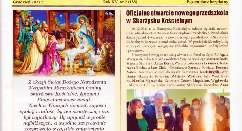 Wypatrywaliśmy intensywnie czy radosna twarz pana wójta nie pojawiła się w świątecznych życzeniach na pierwszej stronie. Niestety nie. Jezuska w żłobie adorują tylko Maryja z Józefem, pasterz, trzej królowie, zwierzęta i ptaszki. Wójta brak. Jest za to tuż obok, nie przy żłobie, a przy torcie, na otwarciu przedszkola.