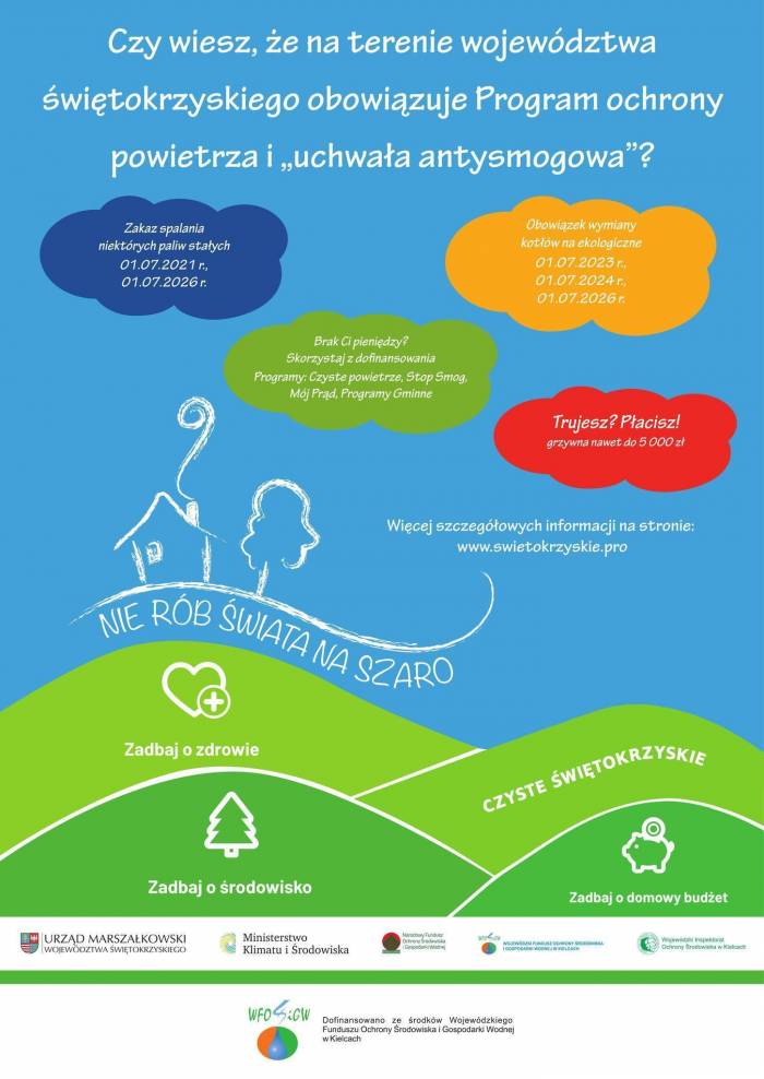 Od 1 lipca 2023 r. na terenie województwa świętokrzyskiego obowiązuje zakaz użytkowania kotłów pozaklasowych tzw. kopciuchów (według normy PN-EN 303-5:2012).