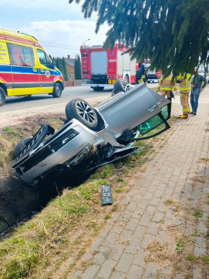 Dachowanie na S7 w Ostojowie. 30-letnia kierująca trafiła do szpitala