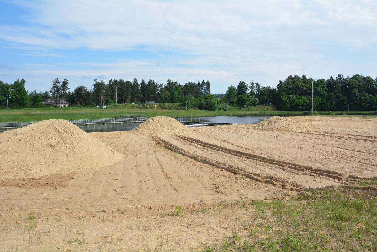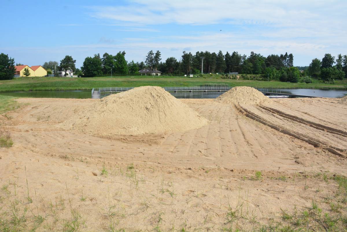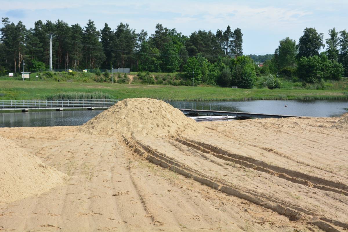 Nowy piasek na plaży nad zalewem w Bliżynie, w tym roku kąpielisko bez ratowników