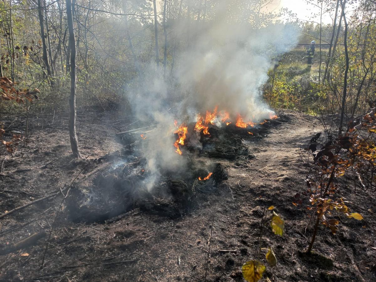 Galeria zdjęć przedstawia akcję gaśniczą podczas trudnego pożaru spowodowanego dużym zadymieniem. Na zdjęciach widać zaangażowanie trzech zastępów straży pożarnej, w tym OSP z Mroczkowa i Bliżyna oraz jednostki ratowniczo-gaśniczej z Skarżyska-Kamiennej. Patrol policji zabezpiecza teren wokół pożaru, a szybka i skoordynowana akcja zapobiegła dalszemu rozprzestrzenieniu ognia.