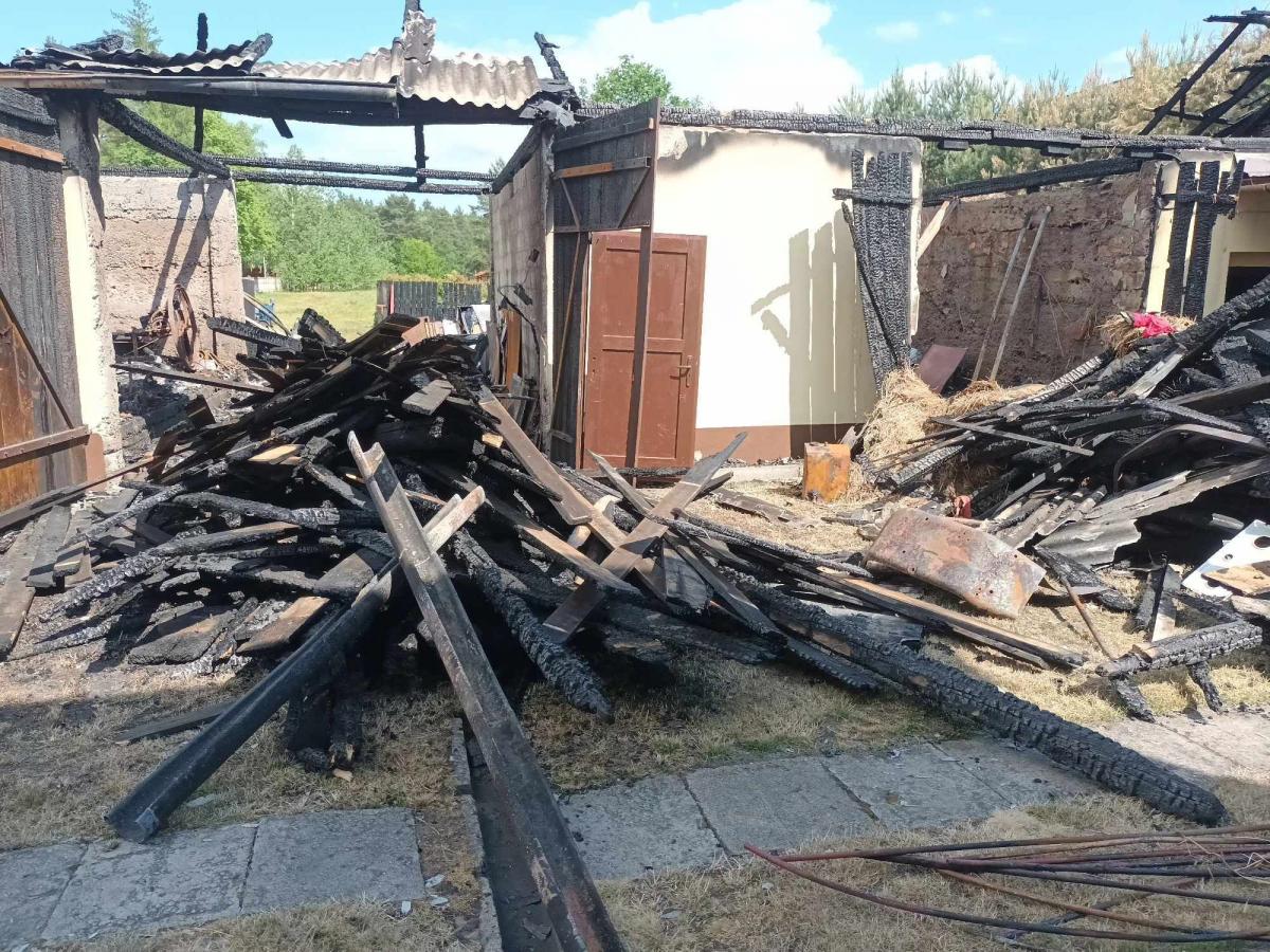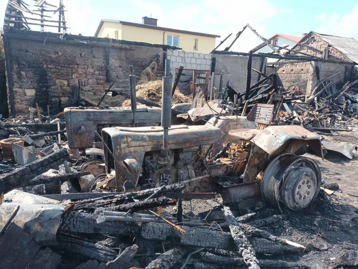 Galeria zdjęć przedstawiająca akcję gaśniczą po pożarze w Mroczkowie, gdzie strażacy broniąc budynku mieszkalnego i przybudówki, walczyli z ogniem. Zdjęcia pokazują trudy akcji ratunkowej, spalone pomieszczenia gospodarcze oraz zniszczone ciągniki rolnicze. Widoczne są także wysiłki strażaka Piotra Dobrowolskiego, który zorganizował zbiórkę pieniędzy na odbudowę gospodarstwa. Zdjęcia ukazują determinację i solidarność społeczności w trudnych chwilach.