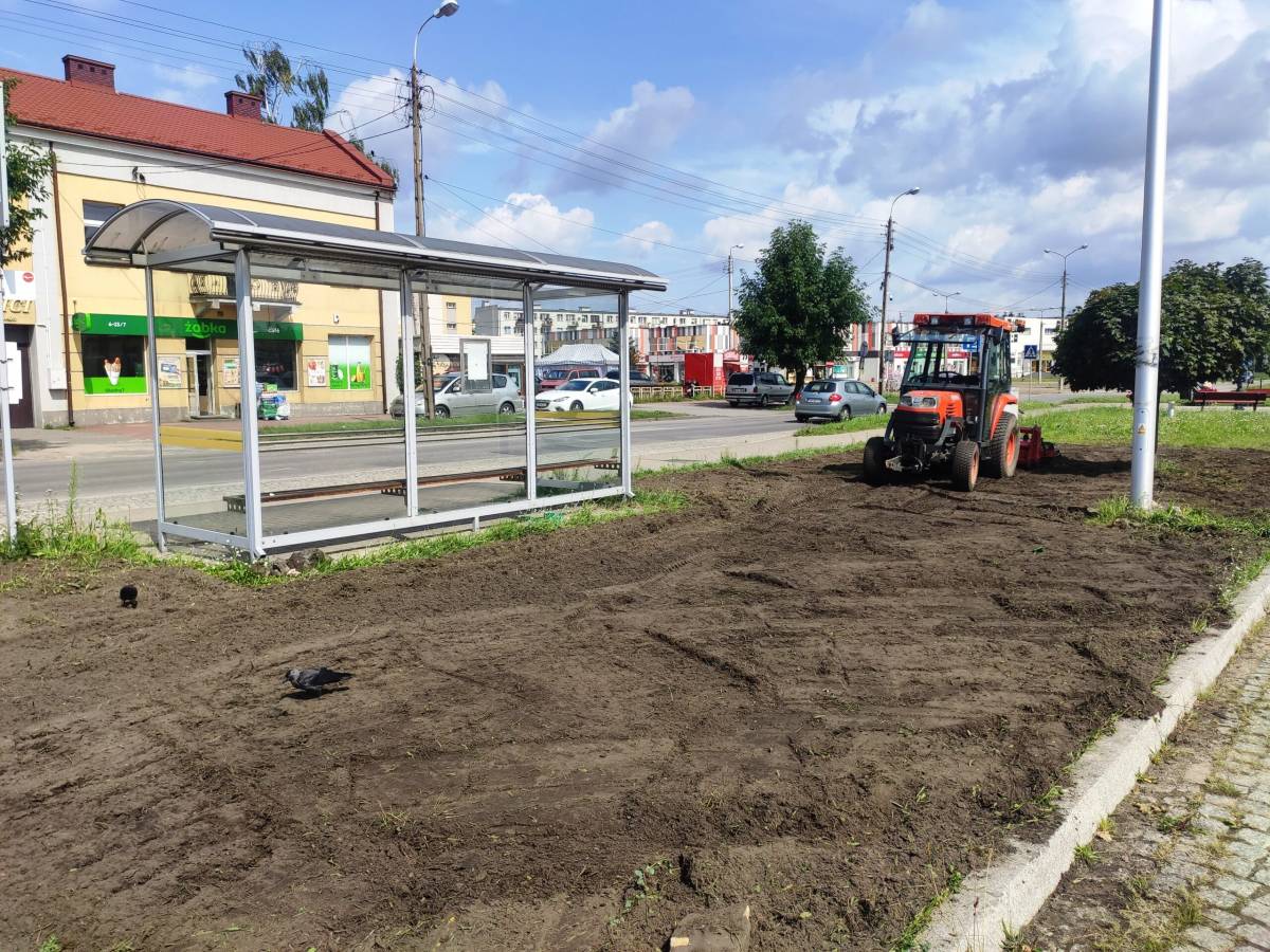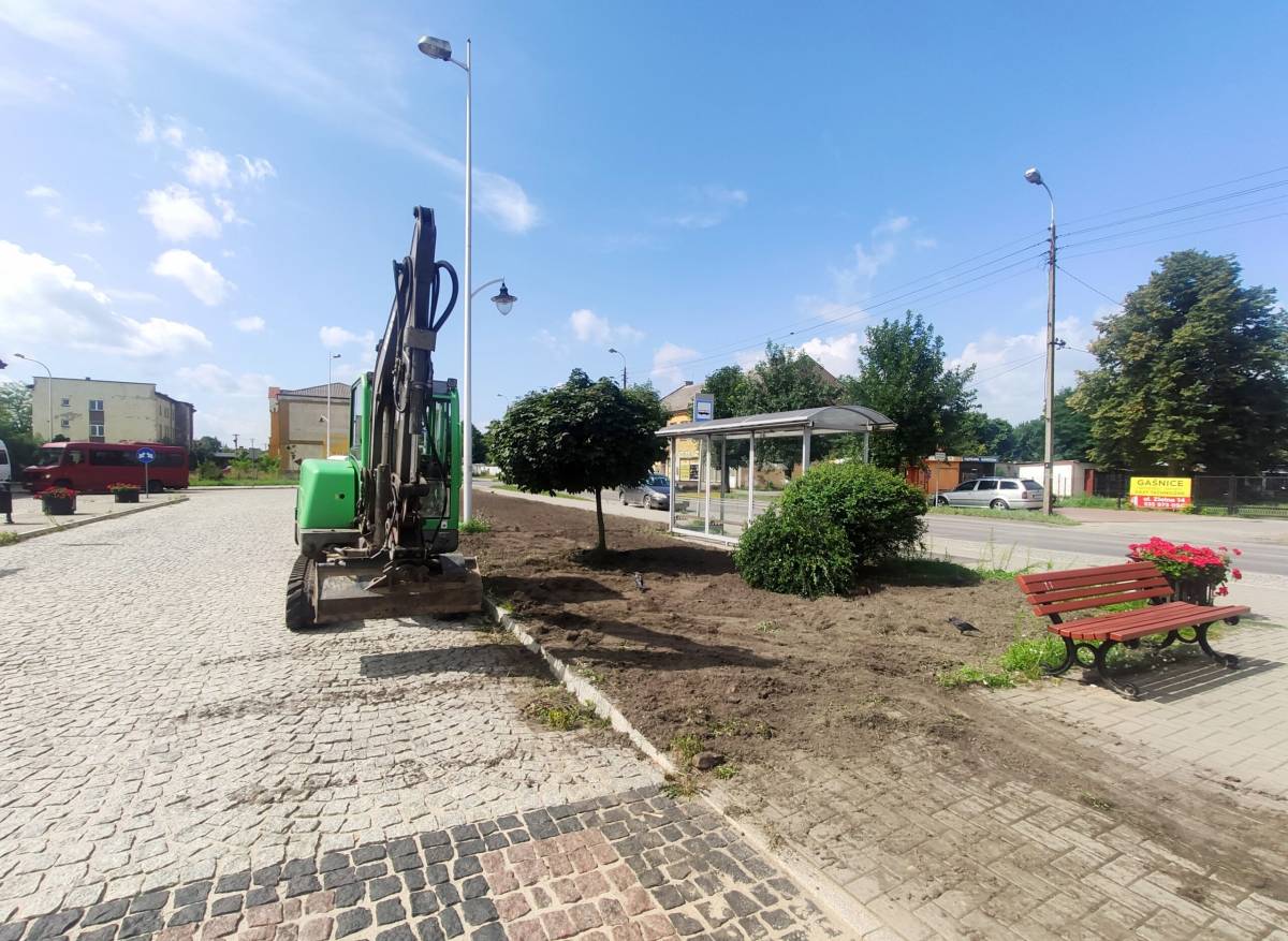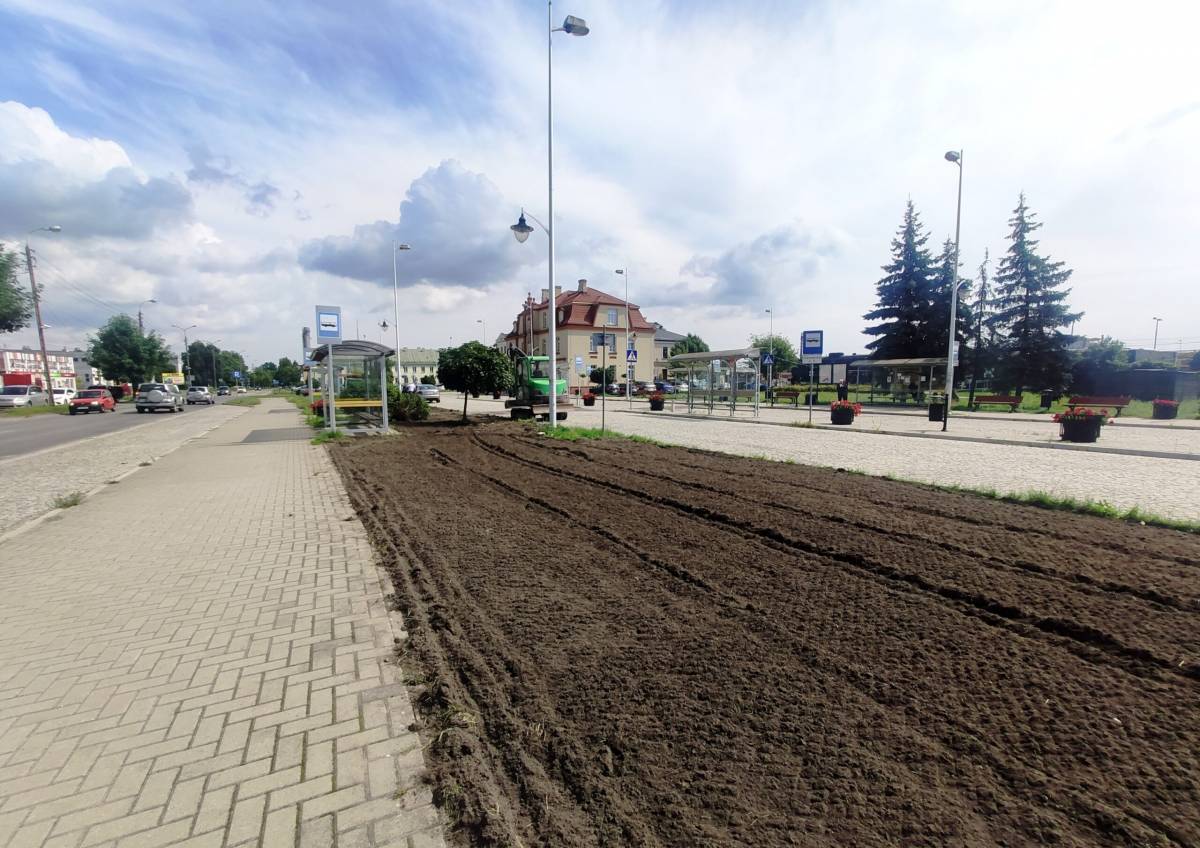 Skarżysko. Skwer w pobliżu dworca z nową zielenią