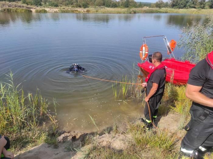 Galeria zdjęć przedstawiająca akcję poszukiwawczą mężczyzny, który zaginął podczas wypoczynku nad wodą w Skarżysku-Kamiennej. Widoczne są działania policji, nurków oraz ratowników z Sandomierza i Starachowic. Dzięki zaangażowaniu drona oraz współpracy z prokuratorem, udało się odnaleźć ciało 40-latka. Żałoba w mieście po tej tragicznej sytuacji.