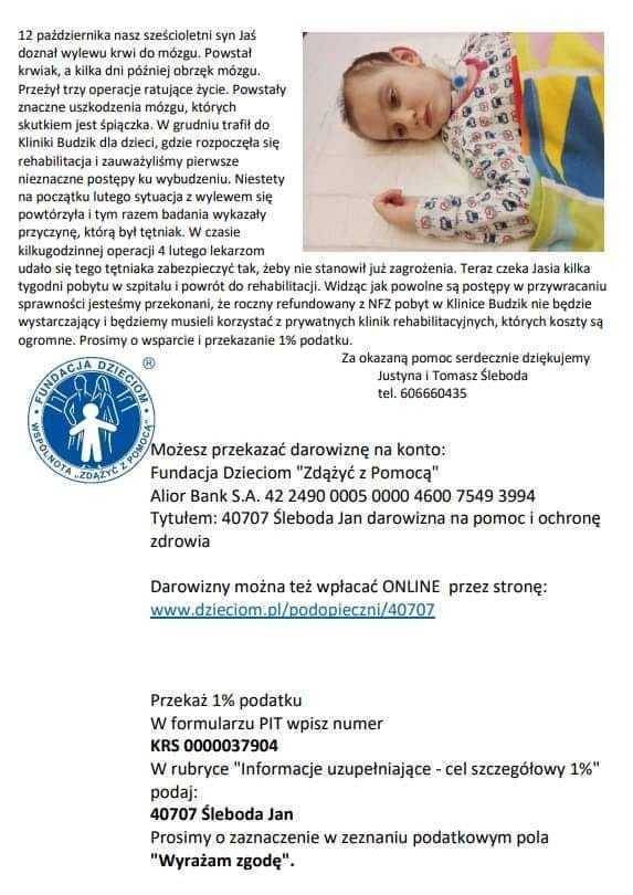 Wspólnie obudźmy Jasia! Jedna chwila zmieniła dramatycznie życie dziecka